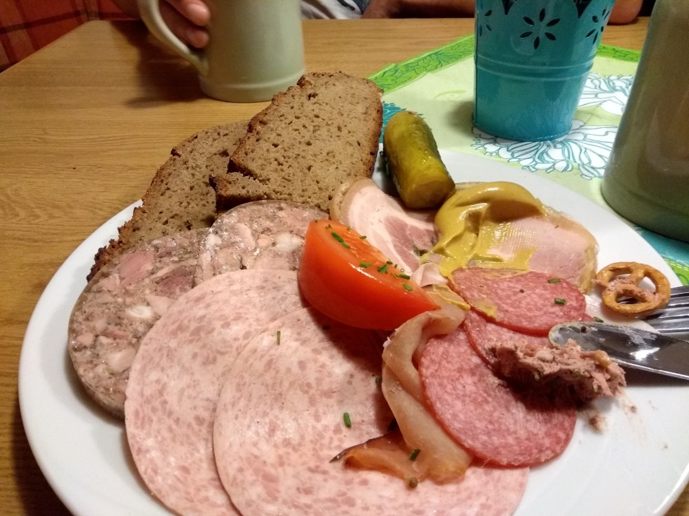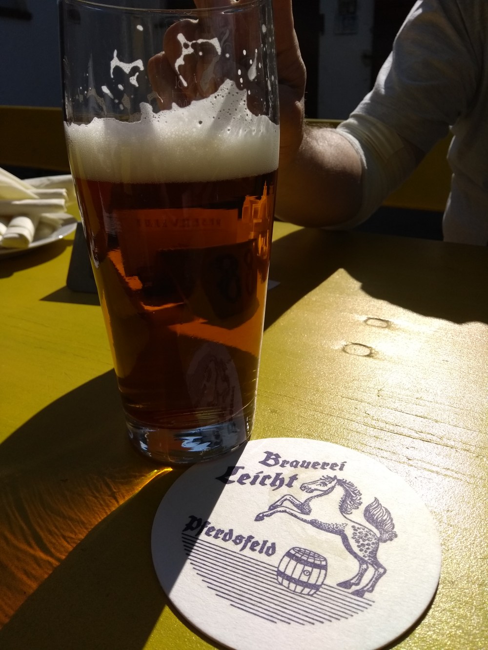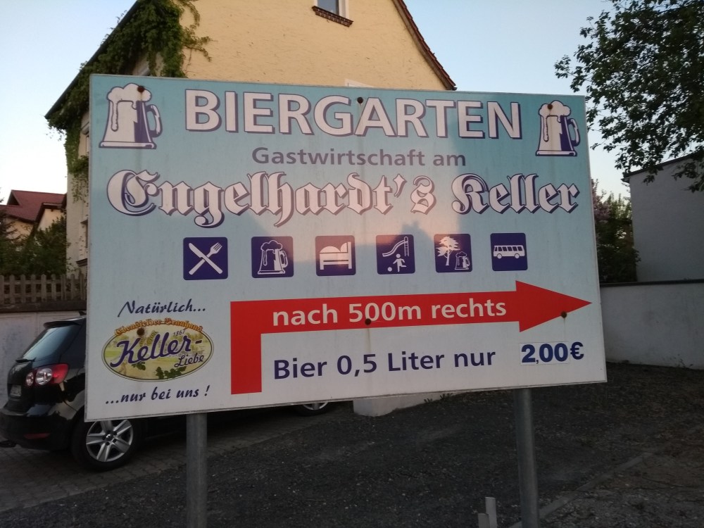 Danach ging es zu einem netten Biergarten etwas außerhalb zu Engelhardts Keller. Auch hier war das Bier toll und ein rustkalen Vesperteller mit viel Sau gab es auch.