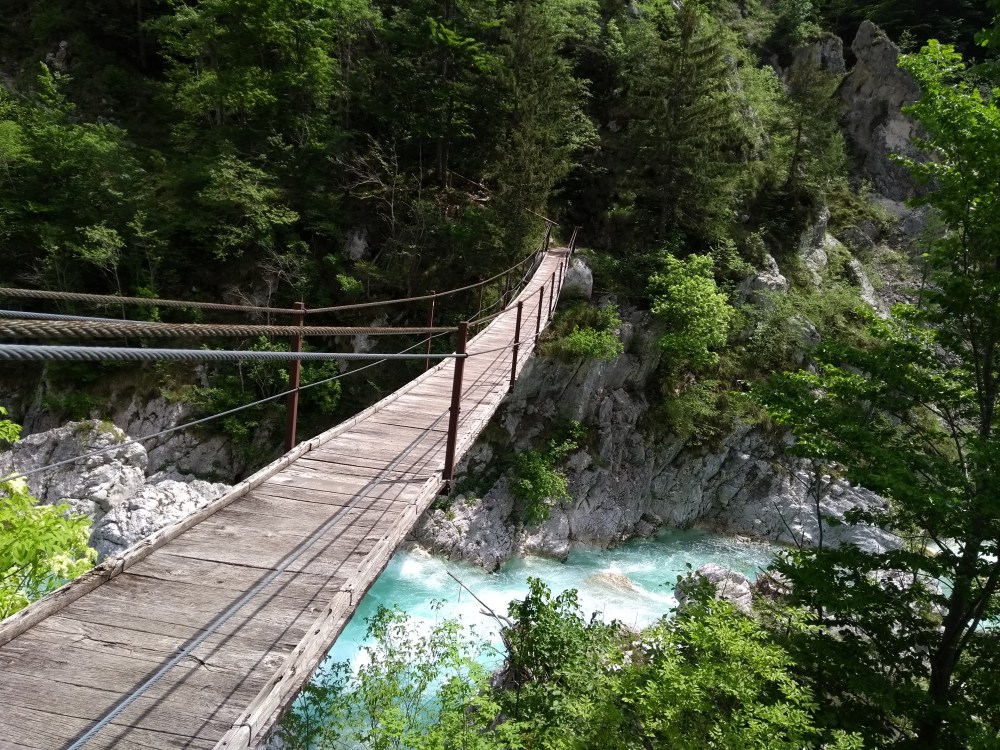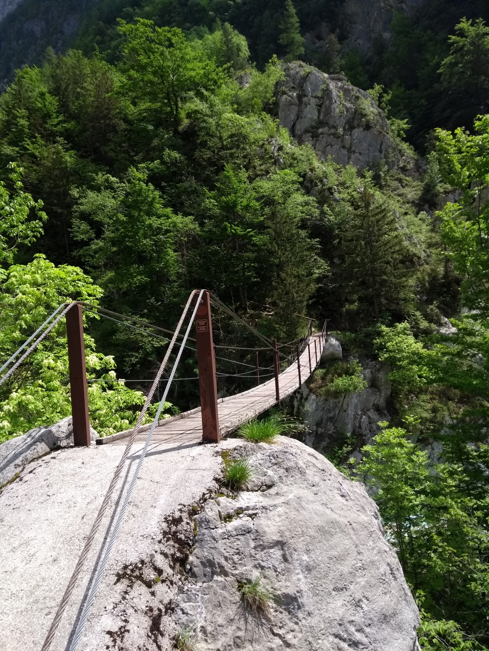 Auf dem Weg ins Tal sind mir die abenteuerlichen Hängebrücken aufgefallen. Das musste ich mal testen. War verdammt wackelig und hat richtig geschwankt.