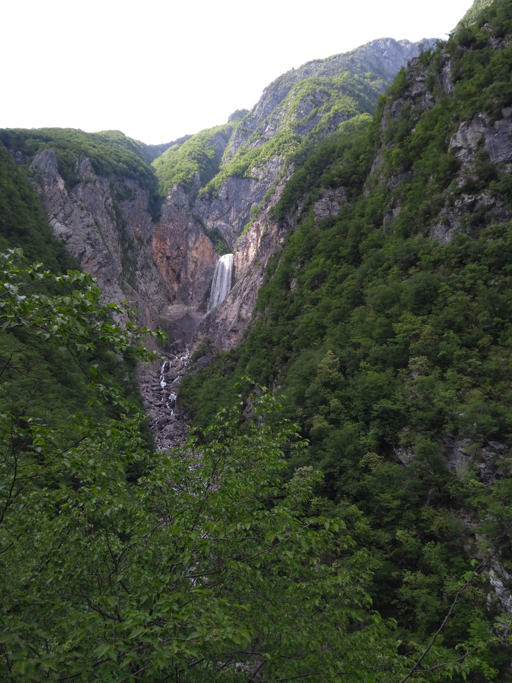 Danach ging es Richtung Tolmin. Unterwegs ist mir ein schöner großer Wasserfall aufgefallen. Also habe ich umgedreht und mich zu Fuß auf den Weg gemacht. Laut Schild 15 Min. laufen zum einem Aussichtpunkt. War ein toller Weg und ich war total alleine.