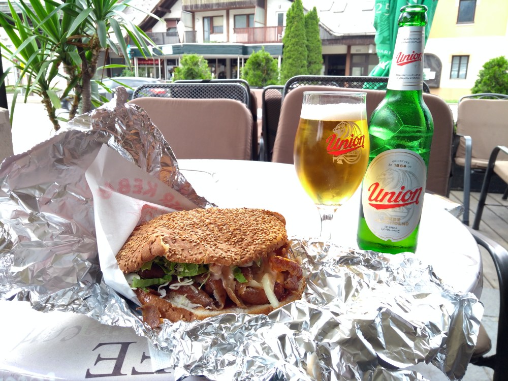 Mittag habe ich dann noch in Slowenien gemacht. Es gab rießen Burger mit Dönerfleich und Dönersoße. War eigentlich eher ein Döner.