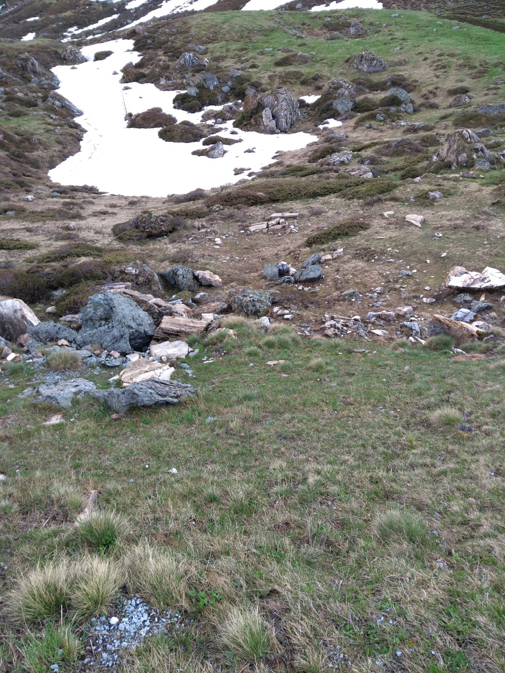 Jetzt haben die Kuh und ich den ersten Schotterpass gemeistert. Die meiste Strecke war gut zu fahren. Ein paar kitzlige Abschnitte mit lockerem Geröll und rutschiger Erde waren dabei.