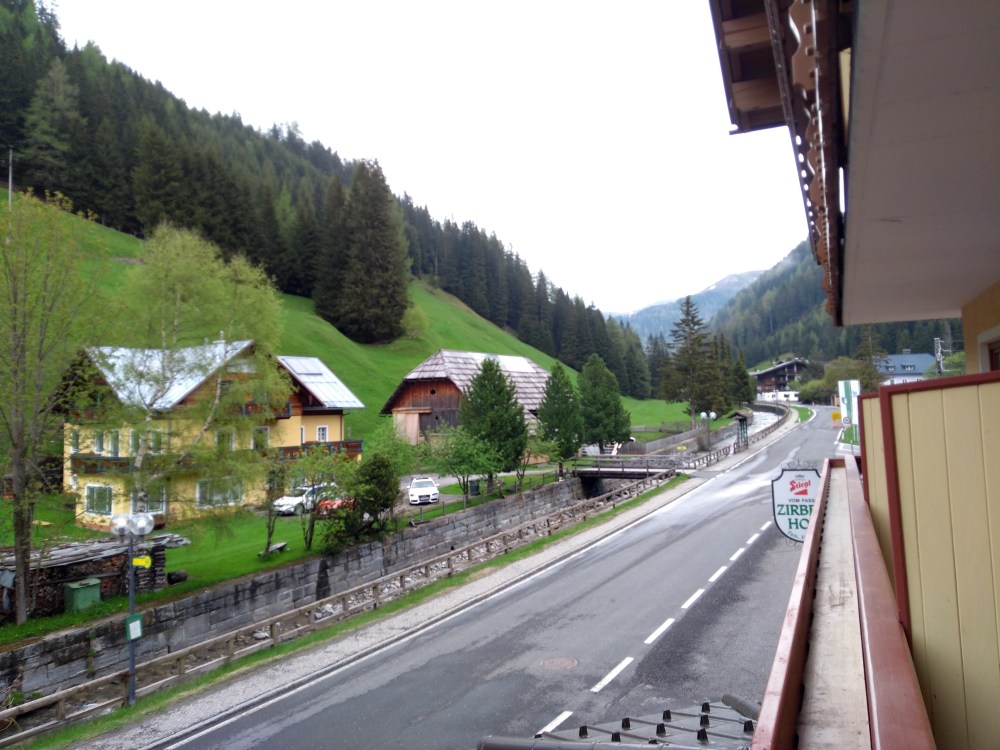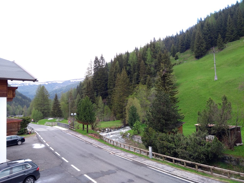 Mein Blick vom Balkon. Der Bach rauscht ohne Ende. Mal schauen ob ich da gut schlafen kann.