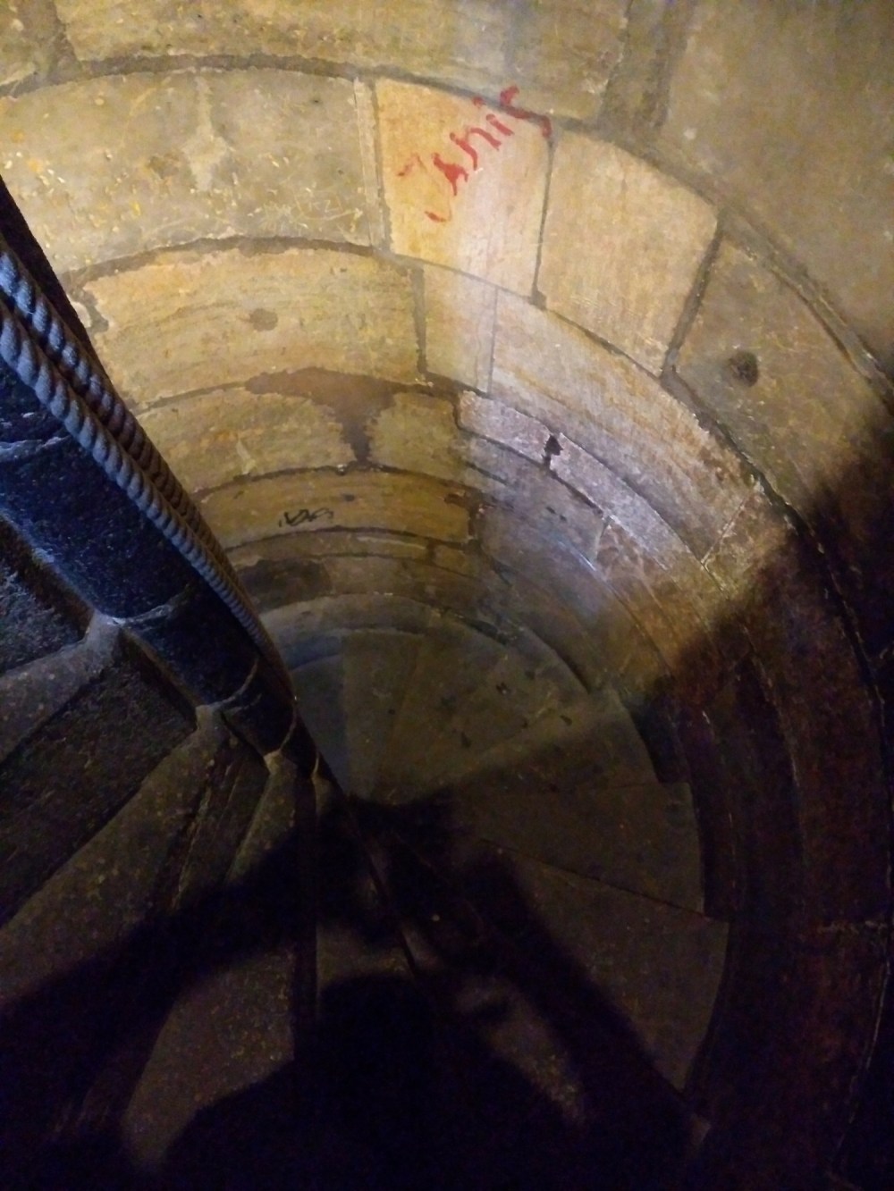 Die Treppe auf den Pulverturm ist abenteuerlich. Gegenverkehr wird schwierig.