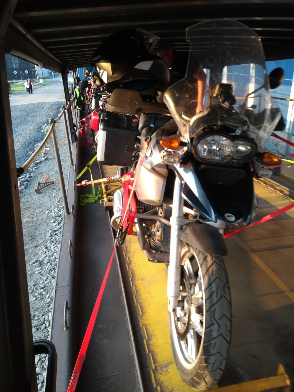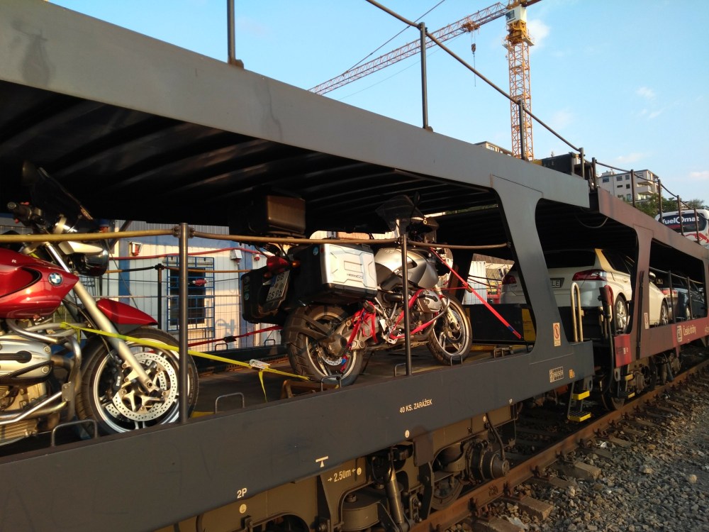 Am Bahnhof habe ich das Motorrad auf den AutoZug verladen.