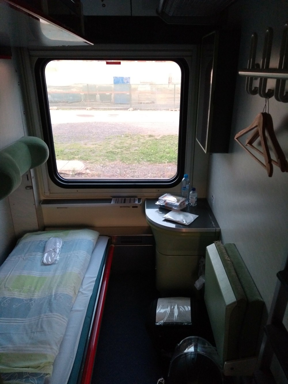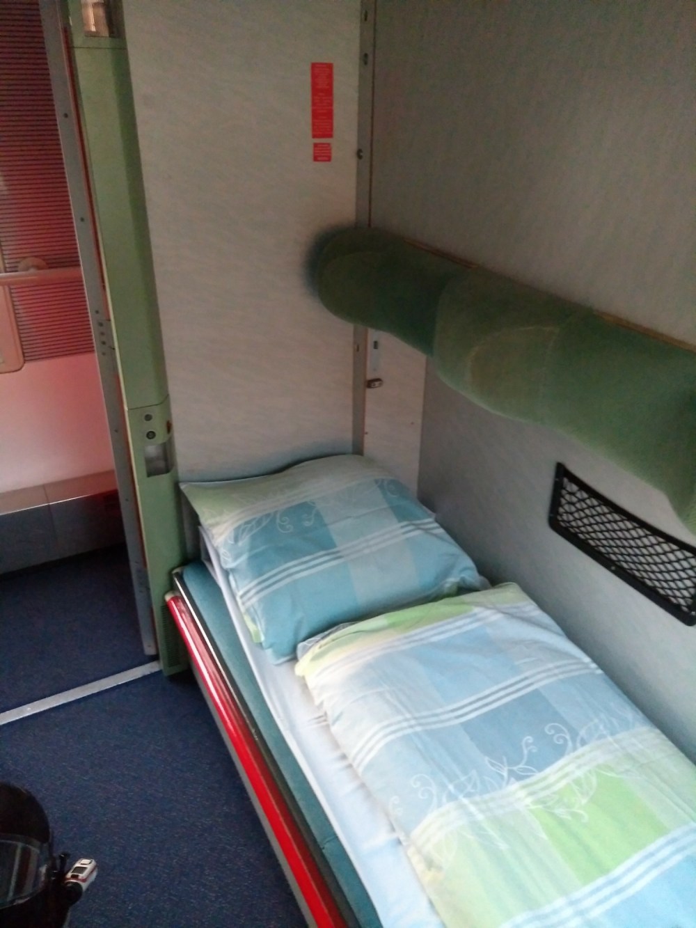 Mein Zimmer für heute Nacht im Zug ist eng, aber gehört mir alleine. Diesmal habe ich ein Einzelzimmer gebucht. So gibt es keine schnarchenden Überraschungen.