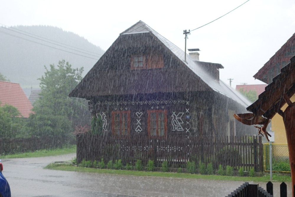 Die Straße durch die große Fatra war ein Traum. Viele schöne breite überschaubare Kurven 😍. Danach stand das Dorf Cicmany mit schönen alten Holzhäusern an. Als ich dort ankam hat es wie aus Eimern angefangen zu regnen. Ich habe mich dort in einem netten Restaurant auf einer überdachten Terrasse einquartiert und gewartet.