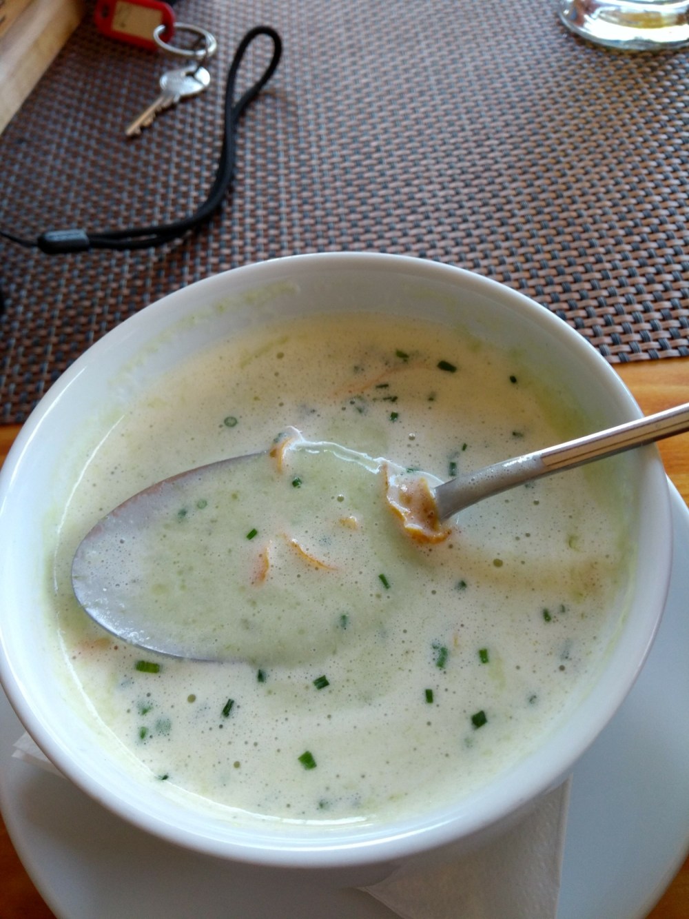 Mit dem Essen hatte ich heute nicht so viel Glück. Die Bärlauchcreme Suppe war zwar lecker, aber Sprühsahne on Top ist 😱.