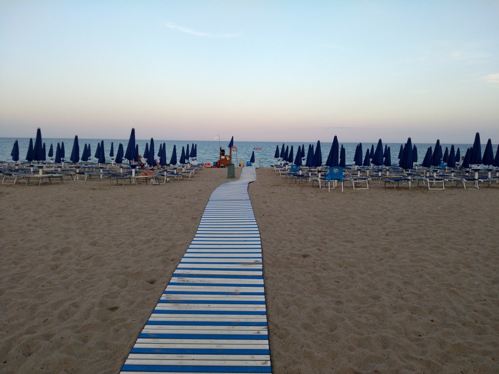 Mit direktem Zugang zum Meer und schönem Strand mit Sonnenschirm und Liegen.