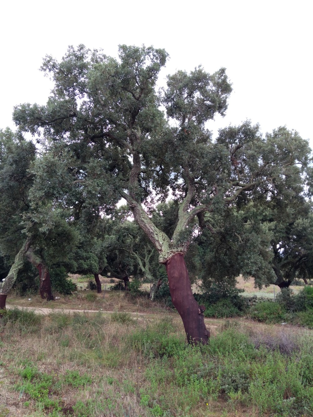 Auf dem Weg haben wir gestern und auch heute immer wieder abgeschälte Bäume gesehen. Das müssten Korkeichen sein. Und die Korkrinde wird abgeschält.