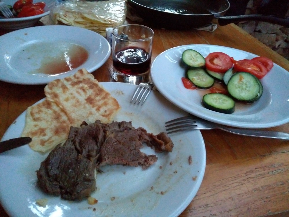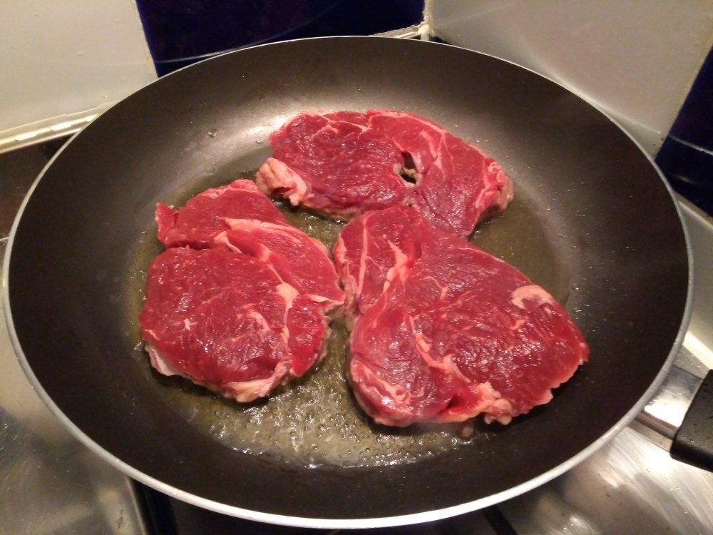 Nach dem einkaufen haben wir uns je 2 fette argentinische Angussteaks in die Pfanne gehauen.