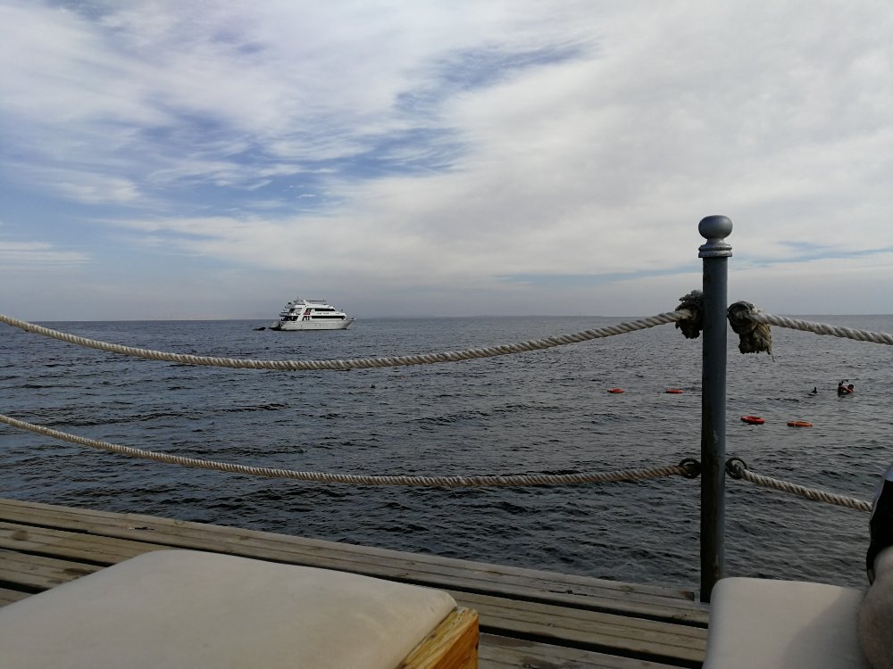 Irgendwie echt Klasse. Das Empfangsgespräch und die Werbeveranstaltung des Reiseveranstalters habe ich sausen lassen. Zum Frühstück gab es Mixed (mit allem) Omlett, Pfannenkuchen und Kaffee. Dann ging es zum Strand. Es geht total flach ins Wasser. Über einen Steg, welcher ca. 1000 Meter lang ist, kommt man an das Hausriff. Dort gibt es eine größere Fläche und es gibt tolle Liegen.