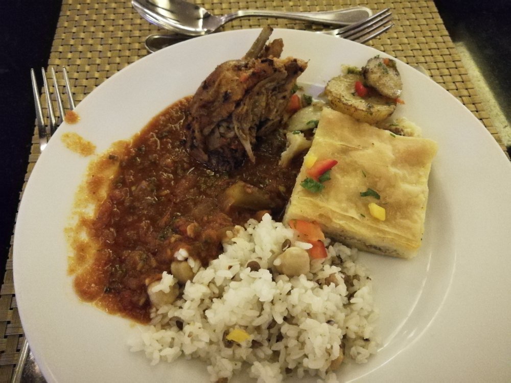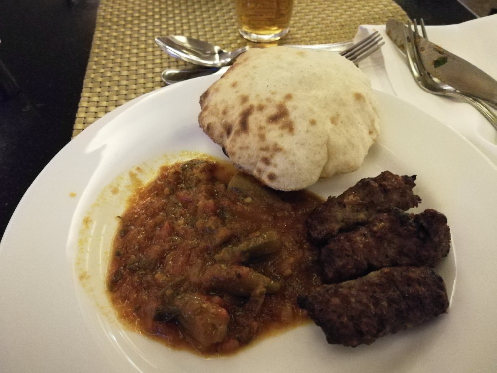 Zum Abschluss war ich nochmals im Ägyptischen Restaurant. Es gab total leckere Okra Tagine, Ente Kartoffeln mit Knoplauch und Hackstrudel. Zum zweiten Gang hab ich dann nochmals Okra Tagine, gegrillte Köfte und Fladen gegessen. Und zum Dessert arabische Schweinereien.