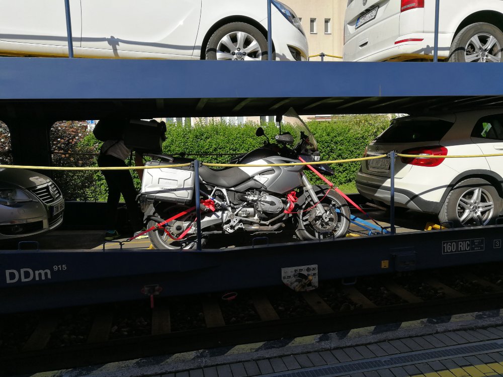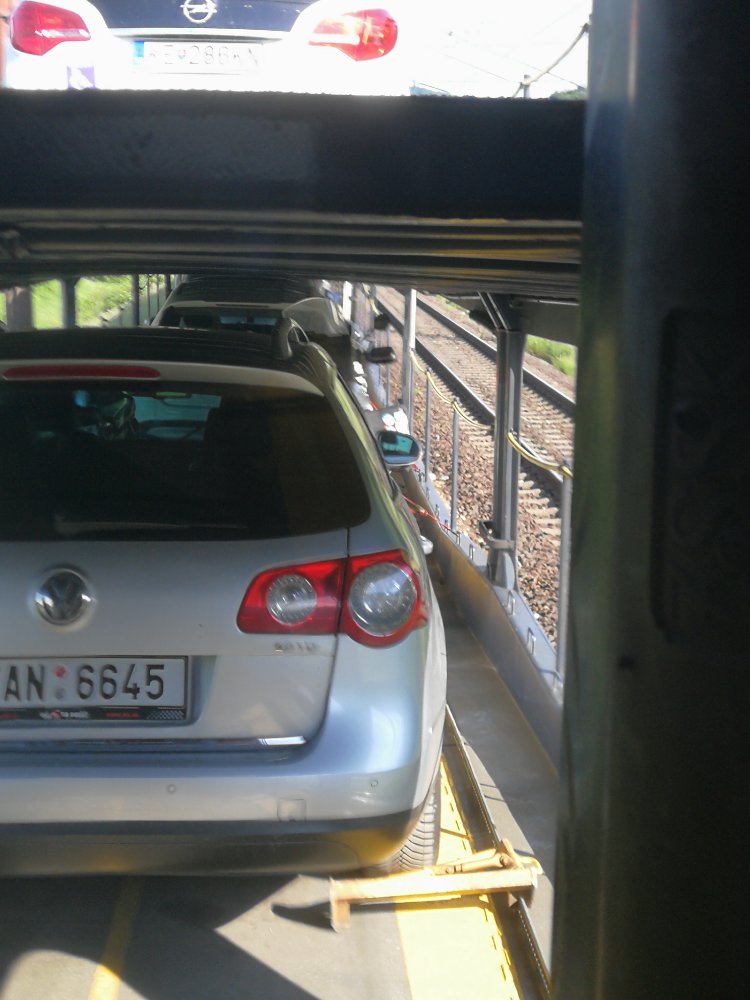 Der Wagon mit den Fahrzeugen war direkt hinter meinem Schlafwagen. Gleich nach dem Auto steht meine Kuh. Und Sie steht noch.