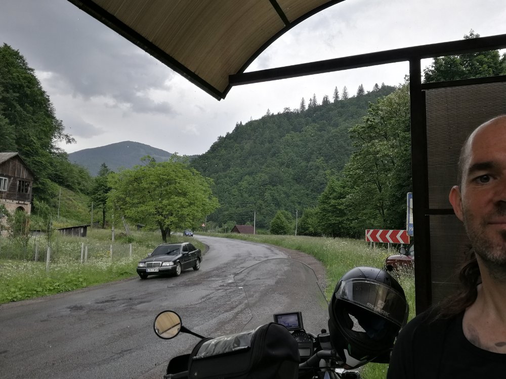 Nach harten 8-9 Stunden war ich im Zielort Kosiv. Die Sraßen waren kurzzeitig ein Traum, aber meist eine einzige Schlagloch Piste. Im lokalen Spermarkt habe ich mich mir Wasser und Pivo eingedeckt. An der Kasse hat mich einer hartnäckig angesprochen. Irgend etwas von Motoclub und ich soll jetzt sofort mitkommen. Also bin ich mit ihm gegangen. Etwa 100m hinter dem Supermarkt war ein Enduro Motocross Club. Ich wurde dort Herzlich Willkommen geheißen und alles was dann passiert ist, bekommt einen extra Eintrag. Irgendwann bin ich zum Hotel gekommen.