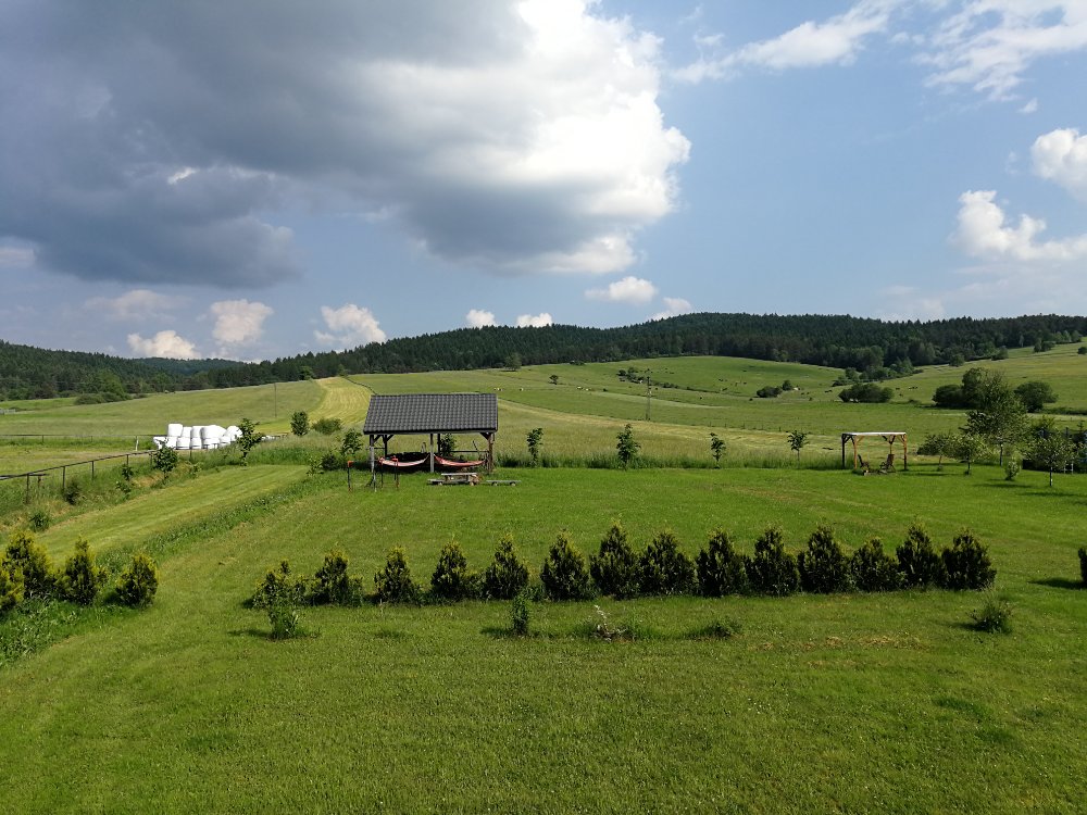 Ab hier sprechen die Kühe wieder polnisch. Meine Unterkunft liegt ca. 20 km hinter der Grenze. Urlaub auf dem Bauernhof. Das ist der Blick vom Balkon.