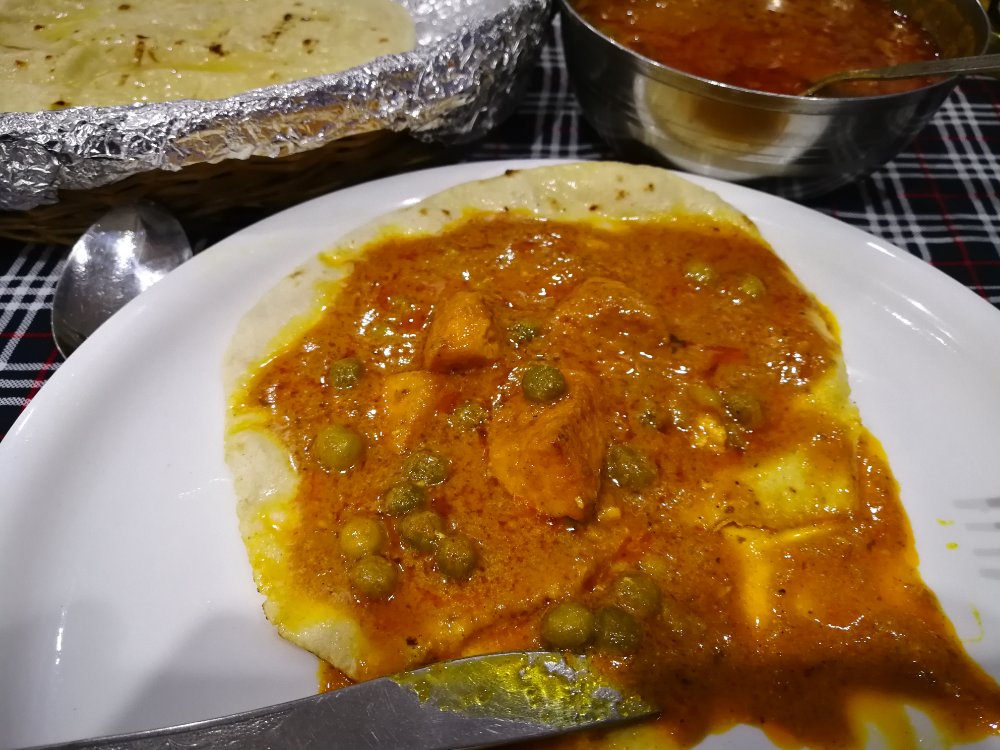 Zum Essen habe ich wieder das leckere Matter Paneer bestellt.