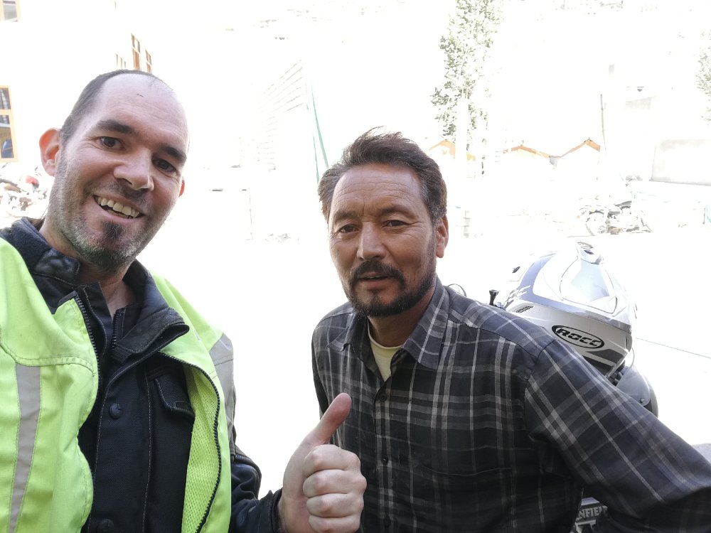 Der Reifenfritze hat wohl 2 Löcher geflickt und mir geholfen das Rad wieder einzubauen. Noch ein Selfi und ein paar Euros für beide da meine Rupien ausgegangen sind und ich war wieder On the Road again. Hier noch meine zwei Helfer.
