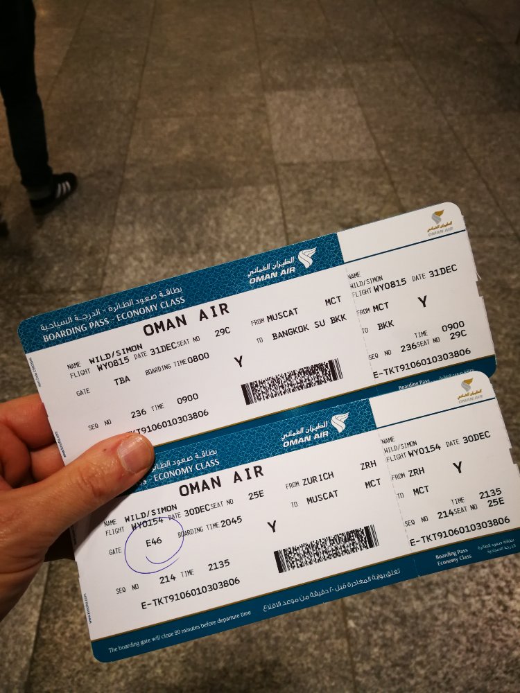 Am 30.12 um 16 Uhr bin ich gestartet. Den Rucksack geschultert und mit der Schönbuchbahn (die seit Dezember wieder in Betrieb ist) ab nach Böblingen. Von Böblingen ging es mit den IC weiter nach Zürich. Mein Kollege saß schon im Zug. Der Flughafen in Zürich per IC direkt erreichbar. Das hat super geklappt. Unser Flug geht mit Oman Air über Muskat.
