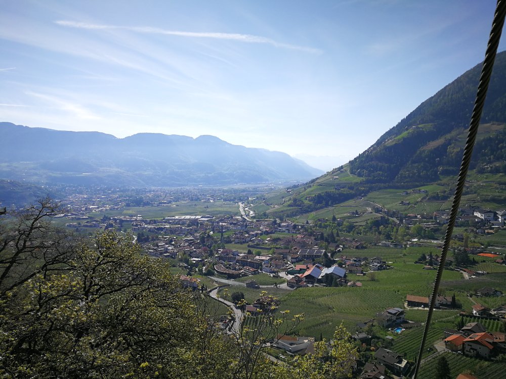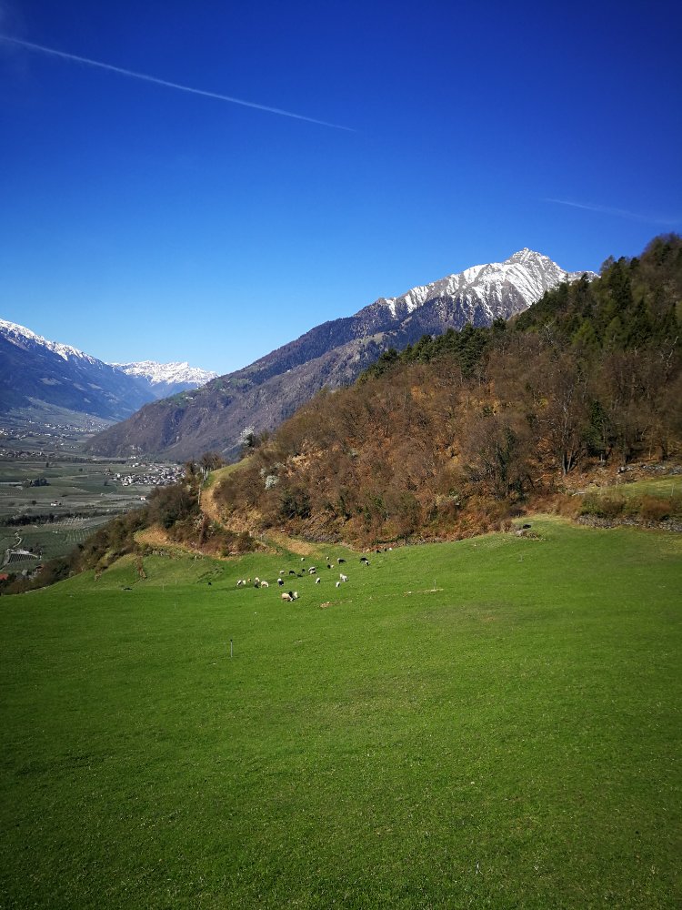 Über Obstbäume und den Waal ging es auf 980m hoch. Mit tollem Blick über das Tal.