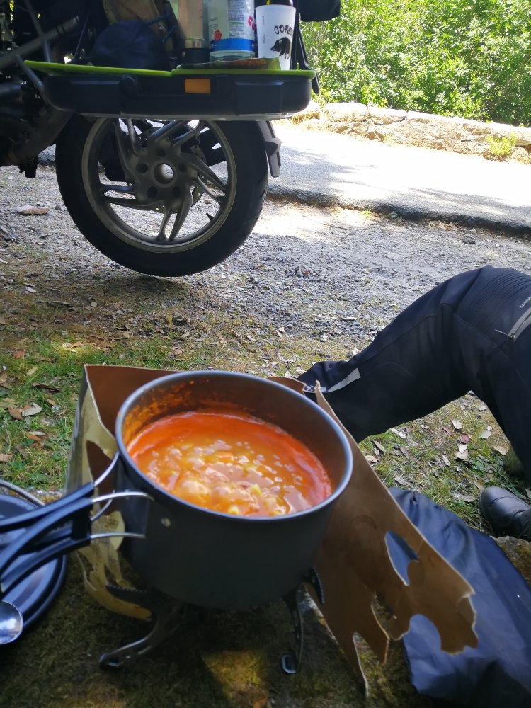 Auf dem Weg nach unten haben wir im Schatten Mittag gemacht und Minestrone gekocht. Knorr sei dank. Ein paar Ziegen haben auch vorbei geschaut.