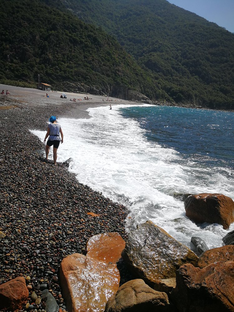 Ruckzuck waren wir in Porto und sind zum Strand und Hafen gegangen. Die Wellen hören sich am Kiesstrand echt lustig an.