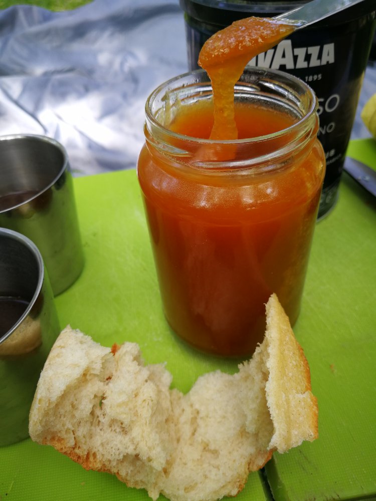 Guten Morgen Korsika, zum letzten Mal dieses Jahr. 😪Wir wollten den letzten Tag mit einem schönen Frühstück auf dem Campingplatz beginnen, leider macht das Restaurant erst Mittags auf. Aber wir konnten Bagette und Croissants kaufen. Also die Kaffeemaschiene angeworfen und den leckeren Honig und Lonzo ausgepackt.