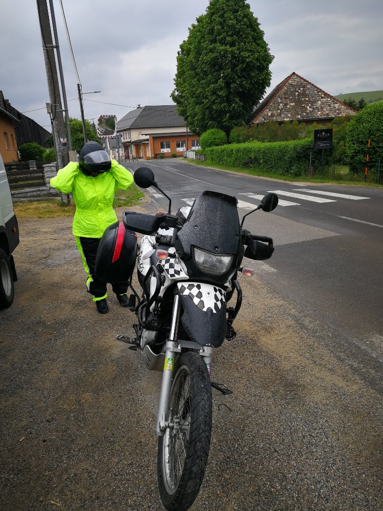 Dann sind wir 50km im Regen gefahren. Hat eigentlich Spaß.gemacht. es war nicht kalt und die Klamotten haben gehoben.