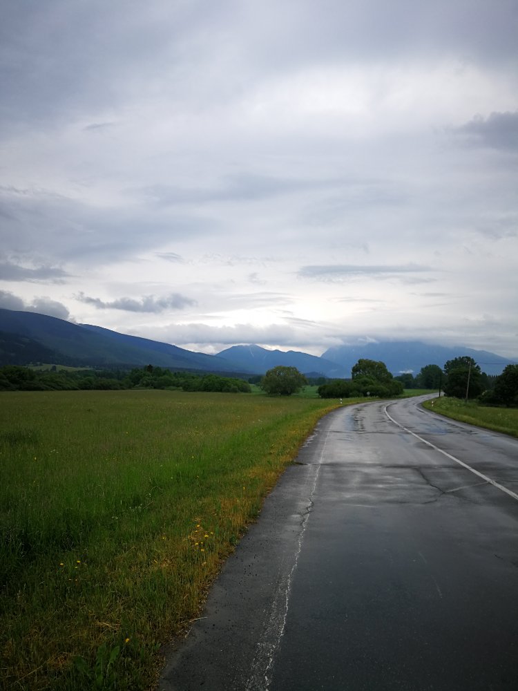 Wir haben super geschlafen. Die Kloster Atmosphäre hat uns wohl gut getan. Es war zwar bewölkt aber kein Regen. Also sind wir voller Tatendrang Richtung Hohe Tatra gestartet. Nach 10km hat es angefangen zu Regnen und vor uns ne dicke schwarze Wolkenfront. Wir haben sofort beschlossen die Regenkittel anzuziehen. Das war die richtige Entscheidung.