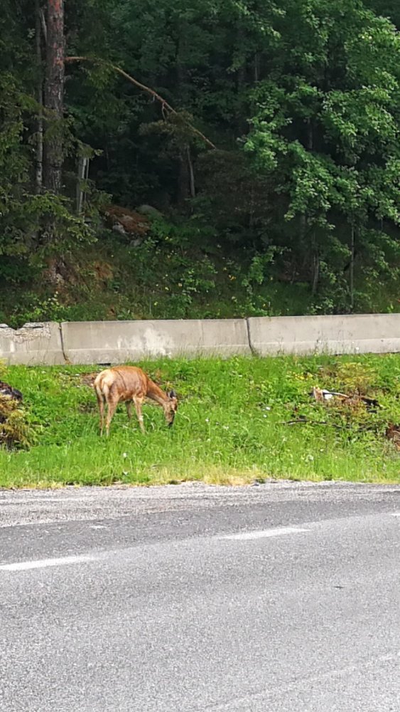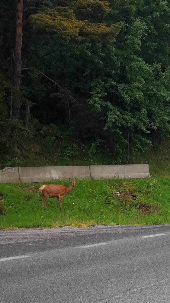 Am Straßenrand ist uns ein größeres Reh begegnet. Das hat total entspannt am Straßenrand gegrast. Ich habe dann gewendet und ein paar Fotos gemacht.