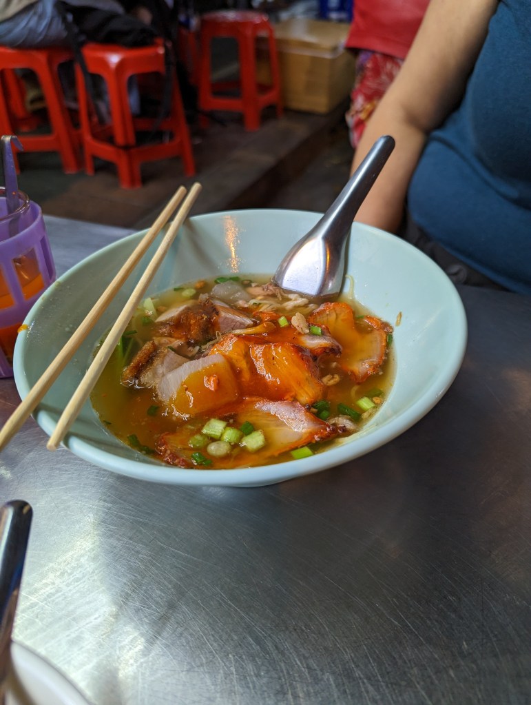 Hier gibt es sehr leckere Rolled Noodles Soup mit knusprigem Schwein. Es ist zwar immer eine lange Schlange und man muss paar Minuten anstehen, aber es lohnt sich.