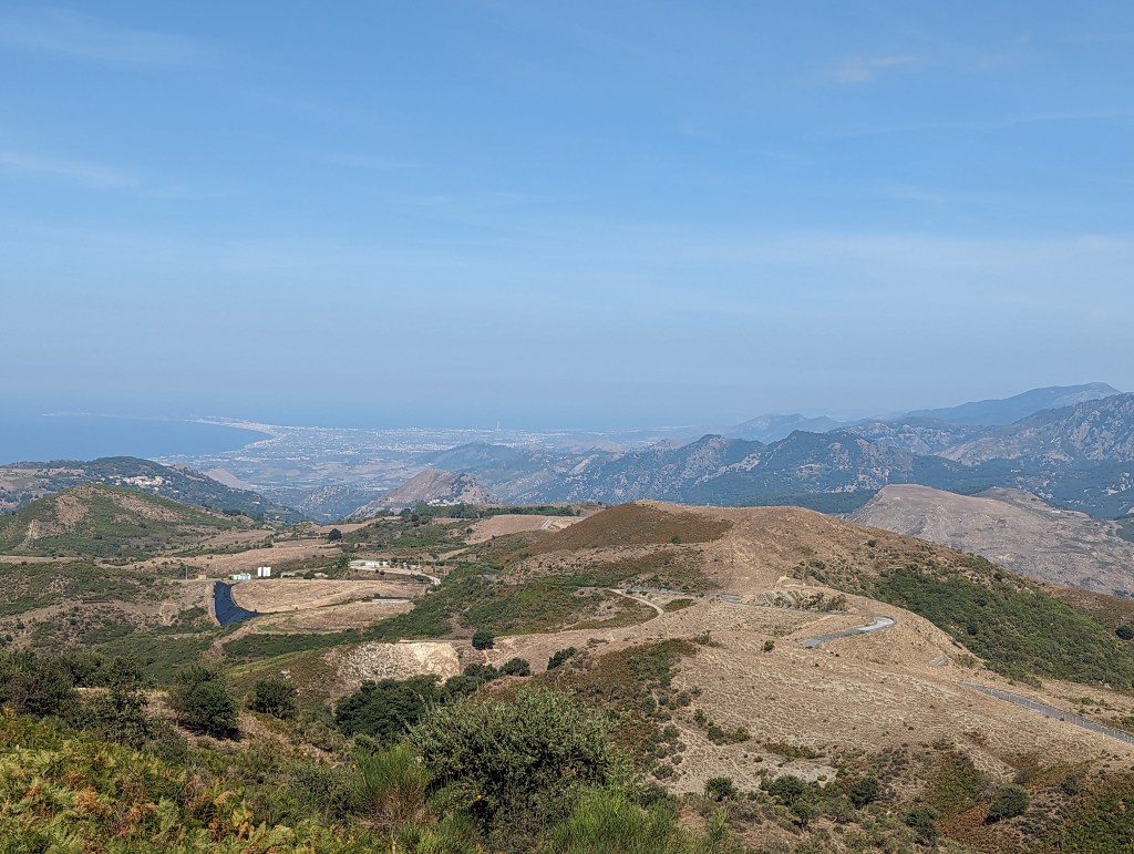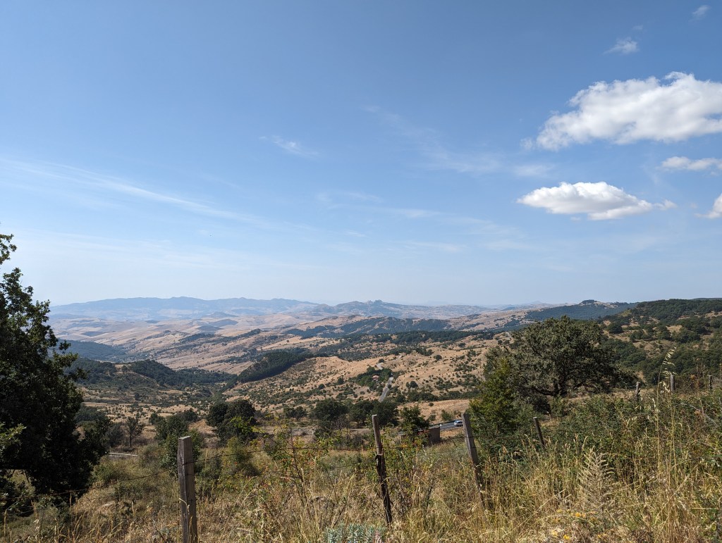 Unsere 2. Überquerung von Nord nach Süd im größten Waldgebiet Siziliens dem Parco dei Nebrodi war wieder komplett im Wald. Die höchste Stelle war der Portella Femmina Morta mit 1525m. Total gute Straße, schön im Wald und beste Kurven. Echt geil. Nur leider keine Aussicht, da überall Bäume waren. Aber ab und zu gab es einen Blick auf den Ätna.