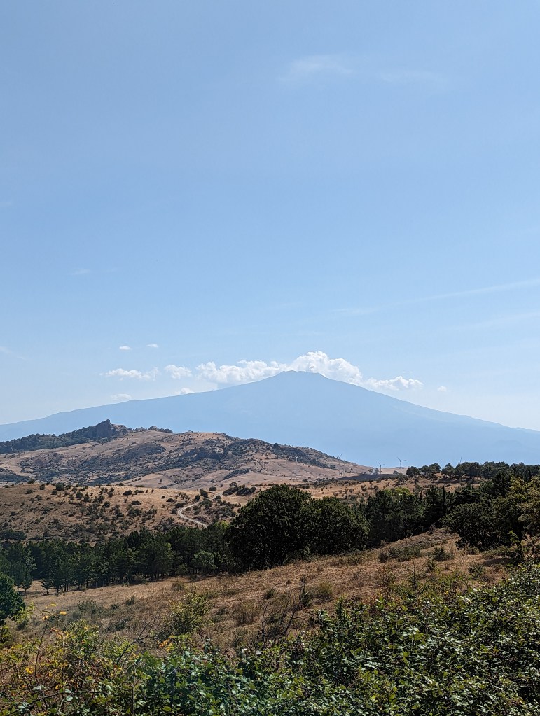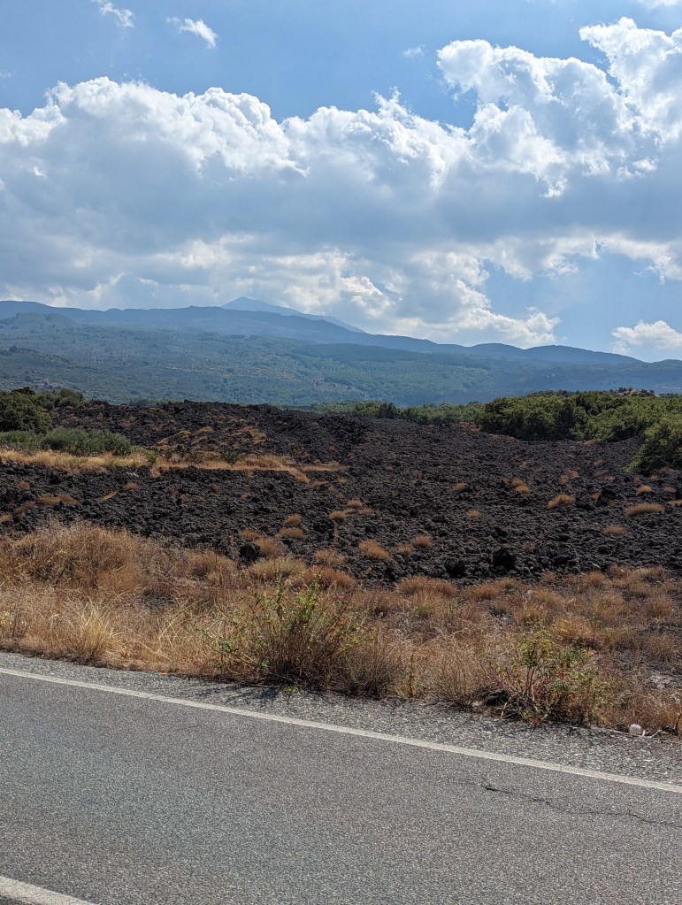 Wir sind dann immer weiter Richtung Ätna gefahren. Der Gipfel lag später in den Wolken und war nicht mehr klar zu sehen.