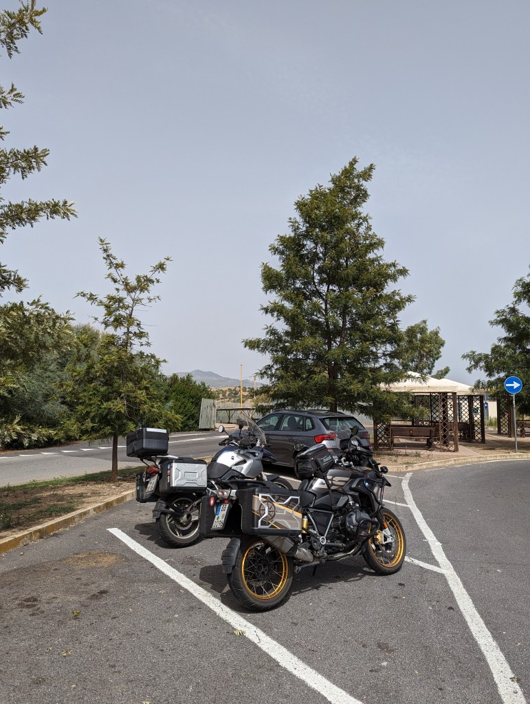 Das Thermometer ist wärend der Fahrt auf 36° gestiegen. Selbst der Fahrtwind hat keine Erfrischung gebracht. Auf einer Raststätte etwas höher gelegen haben wir eine Mittagspause eingelegt.