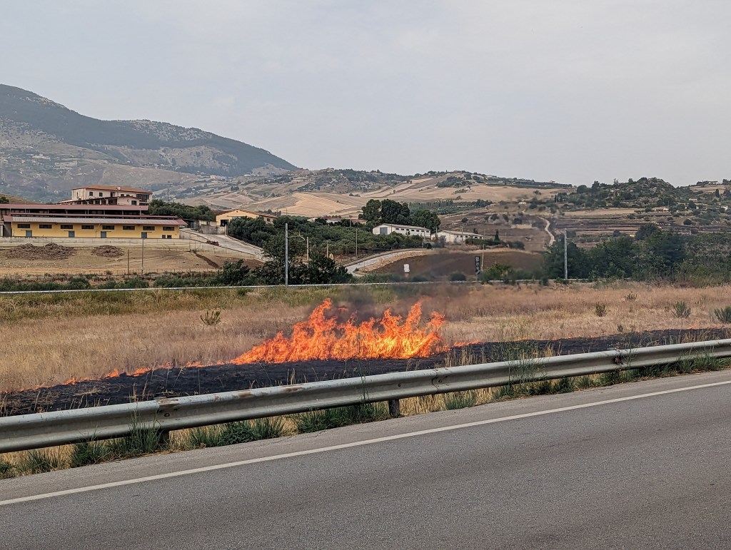 Ich muss meine Annahmen vom ersten Tag etwas revidieren. Die Sizilianer im westlichen Teil der Insel brennen Ihre Felder selbst ab. Die Stoppelfelder werden abgefackelt. Leider stoppt das Feuer teilweise nicht am Ende des Feldes, sonder fackelt die Umgebung mit ab.