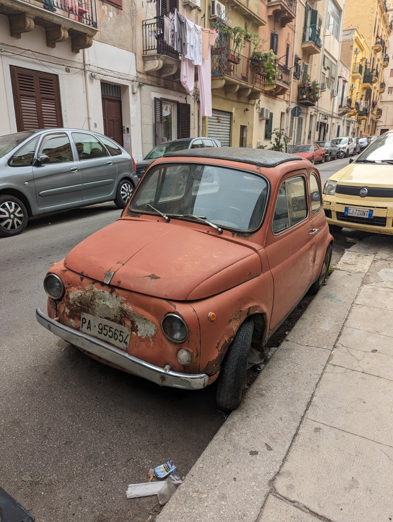 Wir haben Palermo aufgrund der Guten Straße viel früher erreicht, als angenommen. So sind wir durch die Umgebung unserer Unterkunft geschlendert und ich habe mal paar Autos in den Straßen von Palermo aufgenommen. Angefahrene Spiegel, Dellen und Beulen sieht man überall.