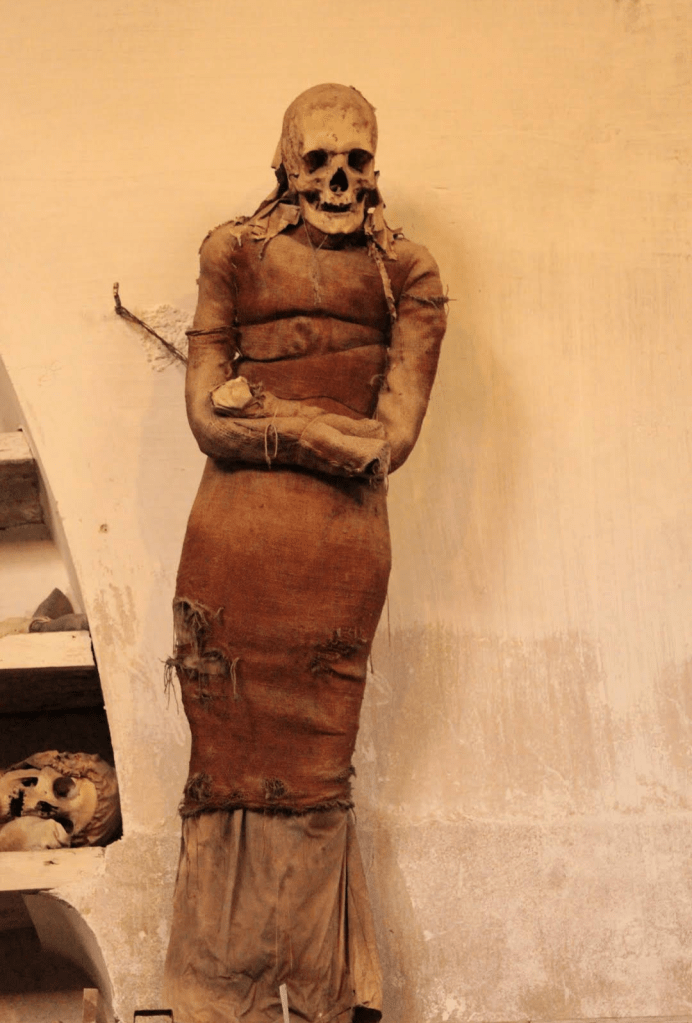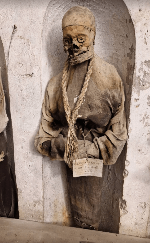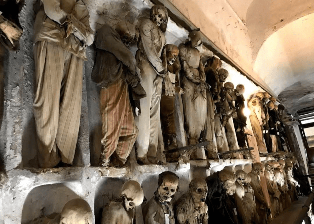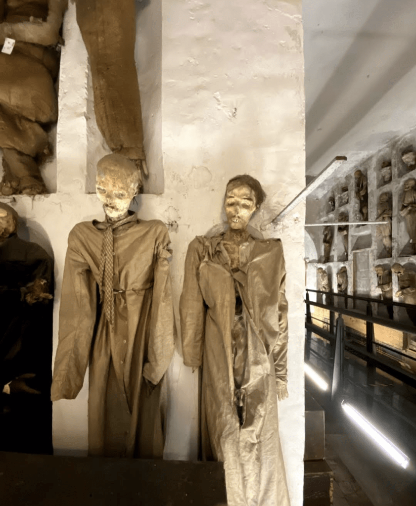 In den Katakomben wurden vom 16. Jahrhundert bis 1920 an die 8000 Menschen bestattet. Aber nicht begraben sondern mumifiziert und mit Kleidung.