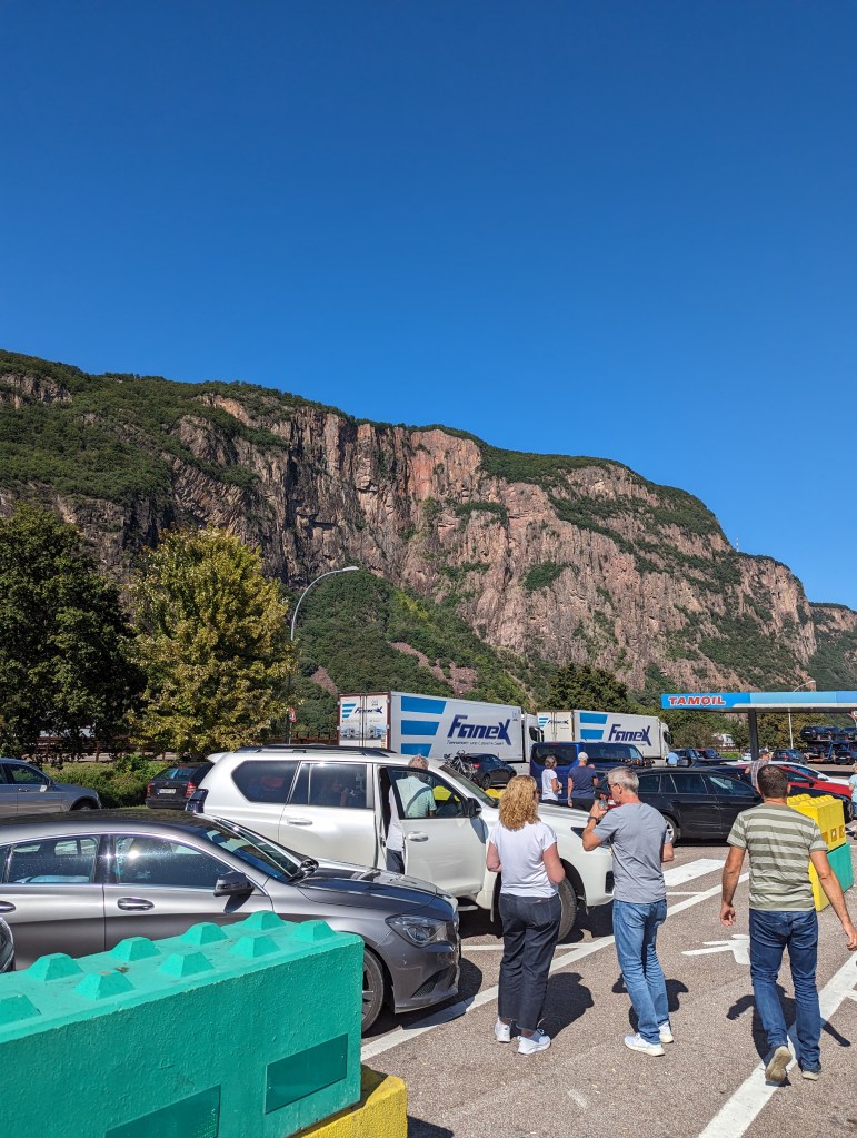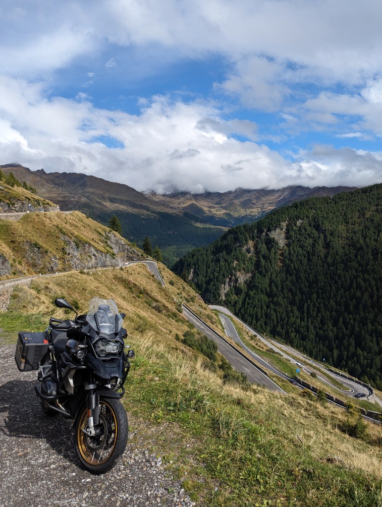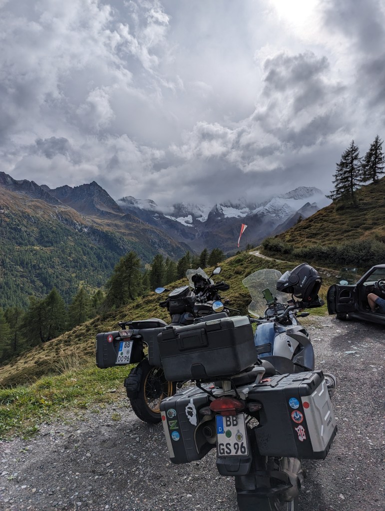 Guten Morgen vom Arsch der Welt, äh aus der Po Ebene. Nach einen kleinen Snack und Kaffee ging es los Richtung Brenner. Leider wurde die Ankunftszeit bei Google Maps immer länger statt kürzer. Unfall auf der Brenner Autobahn mit einer Stunde Verzögerung, Tendenz steigend. Also haben wir auf einer Raststätte vor Bozen beschlossen über Meran und das Timmelsjoch zu fahren. Eine Übernachtung am Ende des Ötztal war schnell gefunden. Das war sicherlich eine meiner Besten Ideen, hahaha.