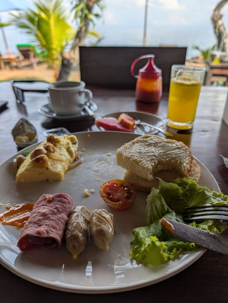Guten Morgen aus Tanjung auf Lombok. Wir haben wunderbar geschlafen. Nach einem herrlichen Frühstück mit Meeresrauschen und Blick auf selbes haben wir den Tag begonnen.