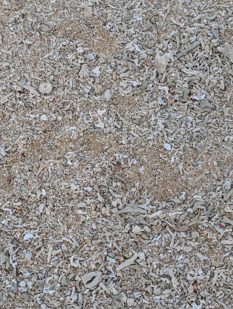 Als erstes haben wir den Strand besichtigt. Hier sind ganz viel Korallensand.