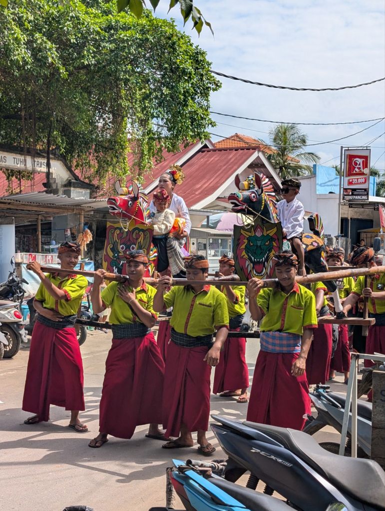 Auf der Straße war heute eine Zeremonie für die Kinder. Mit viel getrommelt und gefrulle. Die Träger haben getanzt und alle hatten eine super gute Laune. Das war irgendwie ansteckend.