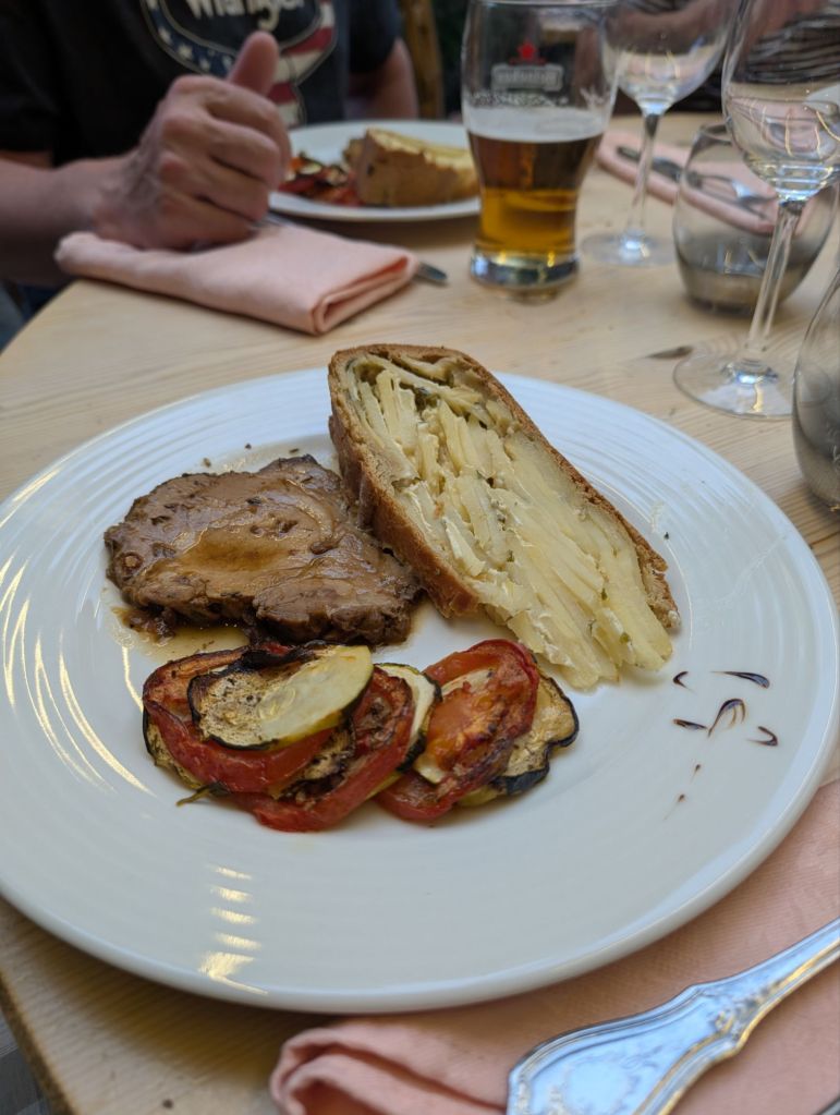 Guten Morgen aus Saint Nicolas bei Aoste in Italien. Wir haben gemischt geschlafen. Rasensprenger (Tock, Tock, Tock Tatatatata) die ganze Nacht. Mich hat das nicht gestört. Ein Gewitter und Regen hatten wir auch.